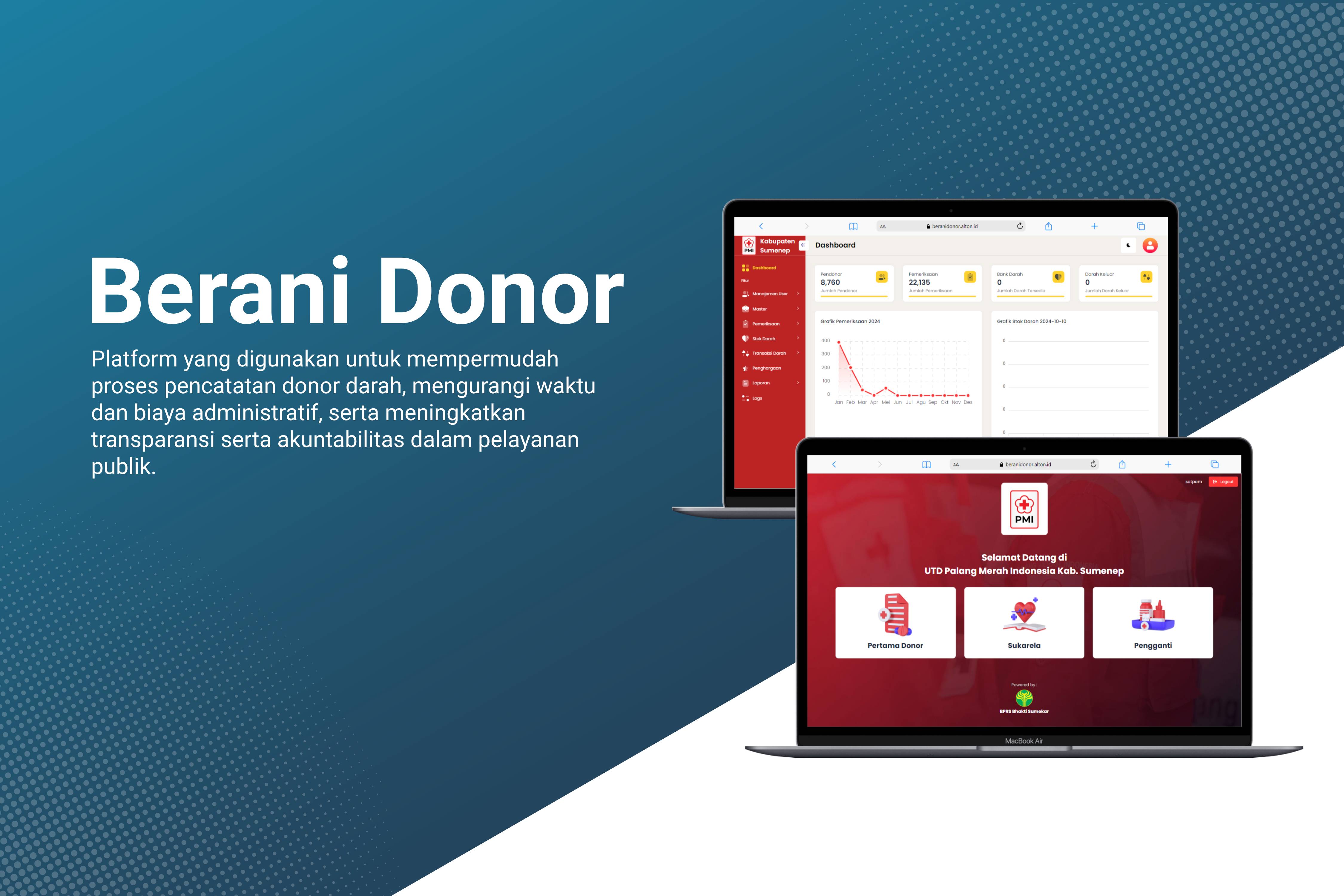 Platform yang digunakan untuk mempermudah proses pencatatan donor darah, mengurangi waktu dan biaya...